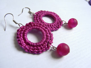 You could think someday I had enough of crochet earrings... but sure, that seems to be still far away! The ones in pink are with embroidery thread (the 8 threads cotton one) and you see it is quite big and just a few crochet stitches are needed to fill the whole ring.