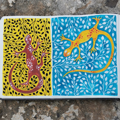 AntwortenLöschenLizards are symbols of regrowth and rebirth in many cultures. You have made them look whimsical with the dots and patters. great job.